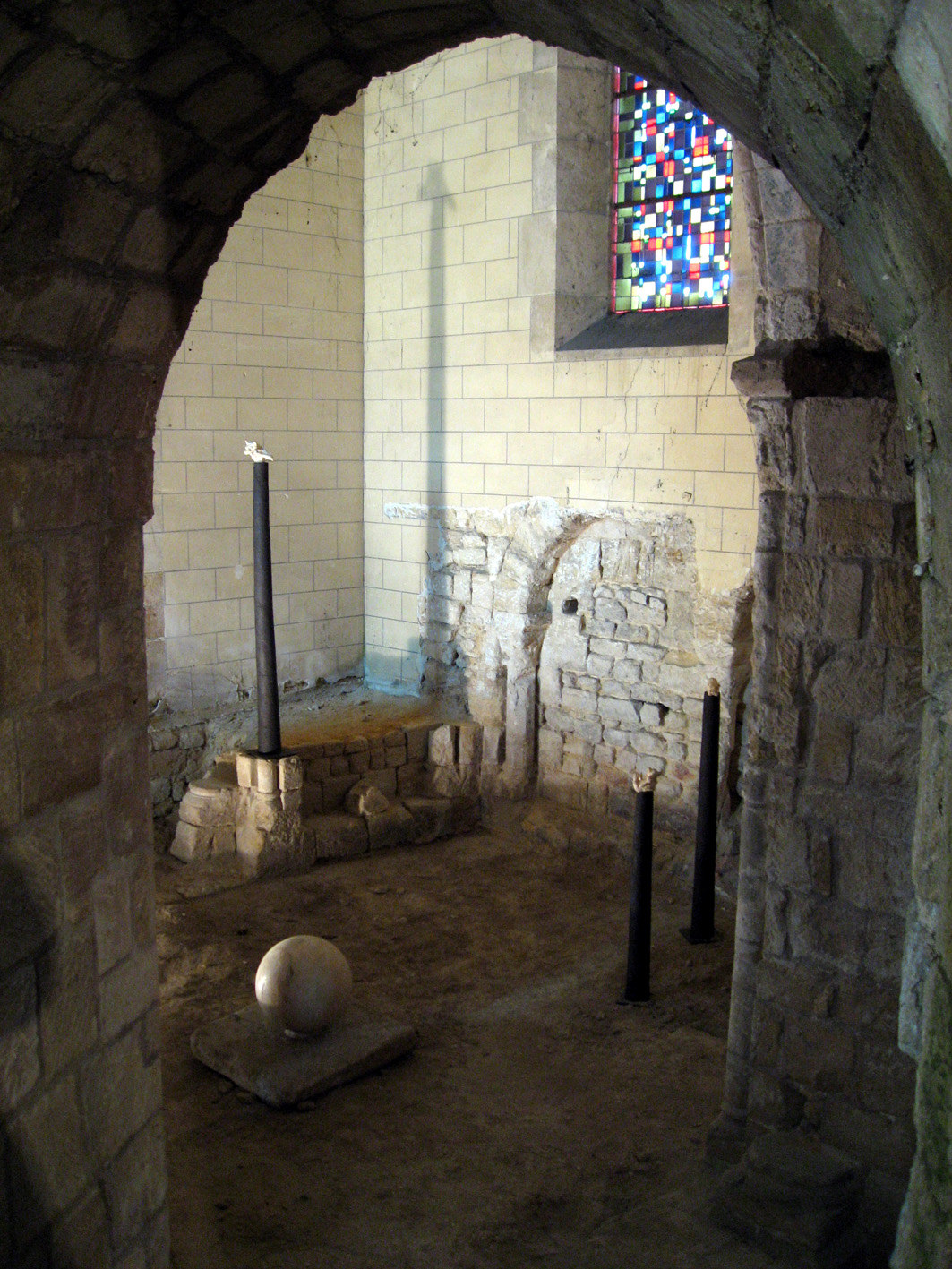 Dans la chapelle sud, la grande colonne blanche pourrait être le septième jour, celui du repos, de la complétude.
